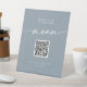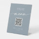 Boho Chic Dusty Blue QR Code Wedding Menu Pedestal Sign
