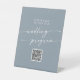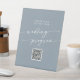 Boho Chic Dusty Blue QR Code Wedding Program Pedestal Sign
