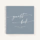 This boho chic dusty blue wedding guest book is perfect for a minimalist wedding. The neutral light blue grey modern bohemian design features simple rustic calligraphy with a unique yet classic style.