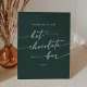 This boho chic emerald green hot chocolate bar sign is perfect for a minimalist wedding. The dark and moody hunter forest green modern bohemian design features simple rustic calligraphy with a unique yet classic style.