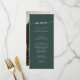This boho chic emerald green photo wedding menu card is perfect for a minimalist wedding. The dark and moody hunter forest green modern bohemian design features simple rustic calligraphy with a unique yet classic style.