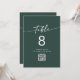 These boho chic emerald green QR code table numbers are perfect for a minimalist wedding. The dark and moody hunter forest green modern bohemian design features simple rustic calligraphy with a unique yet classic style.