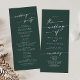 This boho chic emerald green tea length wedding program is perfect for a minimalist wedding ceremony. The dark and moody hunter forest green modern bohemian design features simple rustic calligraphy with a unique yet classic style.