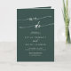 This boho chic emerald green we do folded wedding program is perfect for a minimalist wedding ceremony. The dark and moody hunter forest green modern bohemian design features simple rustic calligraphy with a unique yet classic style.