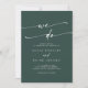 This boho chic emerald green we do wedding invitation is perfect for a minimalist wedding. The dark and moody hunter forest green modern bohemian design features simple rustic calligraphy with a unique yet classic style.