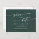 This boho chic emerald green wedding save the date invitation postcard is perfect for a minimalist wedding. The dark and moody hunter forest green modern bohemian design features simple rustic calligraphy with a unique yet classic style.