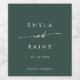This boho chic emerald green cheers to love wedding wine label is perfect for a minimalist wedding. The dark and moody hunter forest green modern bohemian design features simple rustic calligraphy with a unique yet classic style.