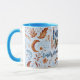 Beautiful boho chic composition featuring delicate floral and moon illustrations in warm copper and blue tones over a soft light background.