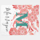 Boho Chic Floral Pattern Coral Red & Teal Monogram Fleece Blanket