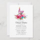Boho chic pink and turquoise blue watercolor floral wine toasting virtual bridal shower invitation.