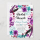Boho Chic Floral Wreath Purple & Teal Watercolor Flowers & Feathers Wedding Bridal Shower Invitation with With trendy brush script font! ~ Check my shop to see the entire wedding suite featuring this design!