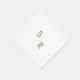 These boho chic green and white monogrammed napkins are perfect for a minimalist wedding. The neutral olive sage green and white modern bohemian design features simple rustic calligraphy with a unique yet classic style.