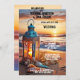 A boho chic all-in-one wedding invitation featuring a lantern on the beach at sunset. On the back is a QR code template for your website details and to RSVP.