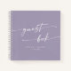 This boho chic lavender purple wedding guest book is perfect for a minimalist wedding. The colourful dusty purple modern bohemian design features simple rustic calligraphy with a unique yet classic style.