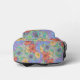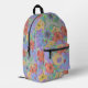 Introducing our vibrant and personalised floral printed backpack. A mesmerising floral pattern adorns the entire surface, featuring a delightful blend of purple, orange, green, and blue hues. The intricate flowers and leaves create a lively mosaic that catches the eye. The background colour is a soft grey, allowing the floral design to truly pop.