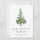 Simple and beautiful holiday card featuring a watercolor Christmas tree with Merry Christmas and Happy New Year written in an elegant font. Customise and personalise your card with your name and year, and your own custom message on the back.