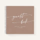 This boho chic neutral taupe wedding guest book is perfect for a minimalist wedding. The beige brown earth tone modern bohemian design features simple rustic calligraphy with a unique yet classic style.
