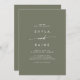 This boho chic olive green casual wedding invitation is perfect for a minimalist wedding. The woodsy dark green earth tone modern bohemian design features simple rustic calligraphy with a unique yet classic style.