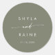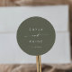 These boho chic olive green names envelope seals are perfect for a minimalist wedding suite. The woodsy dark green earth tone modern bohemian design features simple rustic calligraphy with a unique yet classic style.