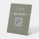 Boho Chic Olive Green QR Code Wedding Menu Pedestal Sign