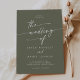 This boho chic olive green the wedding of invitation is perfect for a minimalist wedding. The woodsy dark green earth tone modern bohemian design features simple rustic calligraphy with a unique yet classic style.