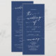 This boho chic royal blue tea length wedding program is perfect for a minimalist wedding ceremony. The bold dark blue modern bohemian design features simple rustic calligraphy with a unique yet classic style.