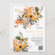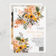 Embrace the warmth of the country sun with our boho-rustic orange wedding invitations, adorned with beautiful sunflowers, green leaves, and brown red branches. Perfect for the free-spirited couple. with a brushed script typography on a simple editable white background.