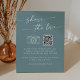 This boho chic seafoam teal share the love QR code sign is perfect for a minimalist wedding. The colourful blue green modern bohemian design features simple rustic calligraphy with a unique yet classic style reminiscent of the beach, ocean and summer seaside.