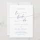 This boho chic slate blue QR code Spanish wedding invitation is perfect for a minimalist wedding. The pale dusty blue and white modern bohemian design features simple rustic calligraphy with a unique yet classic style.
