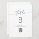 These boho chic slate blue QR code table numbers are perfect for a minimalist wedding. The pale dusty blue and white modern bohemian design features simple rustic calligraphy with a unique yet classic style.