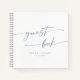This boho chic slate blue wedding guest book is perfect for a minimalist wedding. The pale dusty blue and white modern bohemian design features simple rustic calligraphy with a unique yet classic style.