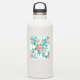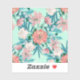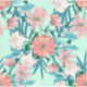 This girly spring Garden flowers and foliage watercolor paint, elegant botanical pattern, roses, wild spring flowers, Japanese green bamboo foliage and fruit plant branch with white flowers leaves, blooming nature pattern, blush, pink, coral, yellow and green colours, over a aqua green and carnival glass green blend background, modern, trendy art, great for everyday wear or home decor. A stylish, trendy, romantic design, simple artwork image.