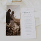 This boho chic teal and white photo wedding menu card is perfect for a minimalist wedding. The blue green and white modern bohemian design features simple rustic calligraphy with a unique yet classic style reminiscent of the coastal beach and a summer ocean cruise.