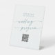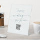 Boho Chic Teal and White QR Code Wedding Program Pedestal Sign