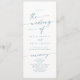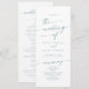 This boho chic teal and white tea length wedding program is perfect for a minimalist wedding ceremony. The blue green and white modern bohemian design features simple rustic calligraphy with a unique yet classic style reminiscent of the coastal beach and a summer ocean cruise.