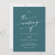 This boho chic teal blue the wedding of invitation is perfect for a minimalist wedding. The bold dark turquoise jewel tone modern bohemian design features simple rustic calligraphy with a unique yet classic style.