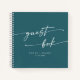 This boho chic teal blue wedding guest book is perfect for a minimalist wedding. The bold dark turquoise jewel tone modern bohemian design features simple rustic calligraphy with a unique yet classic style.