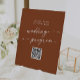 This boho chic terracotta QR code wedding program pedestal sign is perfect for a minimalist wedding. The earthy burnt orange modern bohemian design features simple rustic calligraphy with a unique yet classic style.