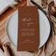 This boho chic terracotta thank you place card is perfect for a minimalist wedding. The earthy burnt orange modern bohemian design features simple rustic calligraphy with a unique yet classic style.