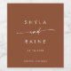 This boho chic terracotta cheers to love wedding wine label is perfect for a minimalist wedding. The earthy burnt orange modern bohemian design features simple rustic calligraphy with a unique yet classic style.