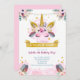 Girls' unicorn birthday invitation in a boho chic watercolor style with a unicorn face, feathers and flowers.