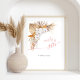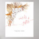 This baby shower sign is exotic, elegant and chic. This beautiful collection is full of life, warm of a sunny beach in a faraway place. Boho chic palm leaves and white flowers contrast beautifully with the terracotta background on the back adding an elegant touch to this collection.