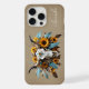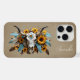 Boho Chic Watercolor Sunflower Feather Cow Skull iPhone Case
