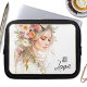 Laptop sleeve featuring a watercolor painting in bohemian style with a woman with flowers in her hair.