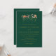 Romantic dark emerald green and gold wedding invitation with hand-painted bohemian florals