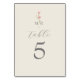 This wedding table number blends rustic charm with elegant sophistication, featuring a modern accent. Adorned with a watercolor spring floral monogram at the top, the design is highlighted by a light grey script that adds a sophisticated touch. Perfectly suited for a wildflower-themed celebration, it brings a warm, contemporary feel to your table setting.