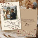 These beautiful cream coloured wedding thank you cards feature your photo surrounded by a bounty of rustic wildflowers in shades of sienna, dusty blue, and taupe. The caption reads: Love and Thanks, with your names below. The back has space for a short note and custom signature. Simple and elegant, this thank you card is the perfect way to let your friends and family know how much you appreciate their love and support.
