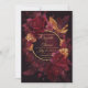A wedding invitation in boho chic style with burgundy and gold theme.