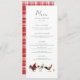 Rustic and boho wedding dinner menu card featuring watercolor illustration of chickens.
