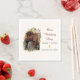 An elegant Christian Cross floral arch wedding photo napkin featuring faux gold accents, blush pink flowers, and watercolor greenery. Add your photo—plus your names and wedding date to our calligraphy typography for your rustic boho wedding. You can delete the background colour for a modern white background.